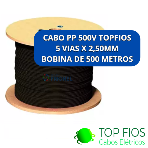 > Cabo PP 500V Preto Spazio 5x2,50mm - BOBINA 500 METROS
