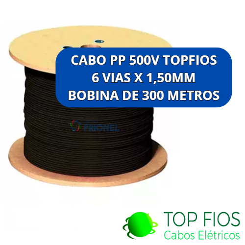 > Cabo PP 500V Preto Spazio 6x1,50mm - BOBINA 300 METROS